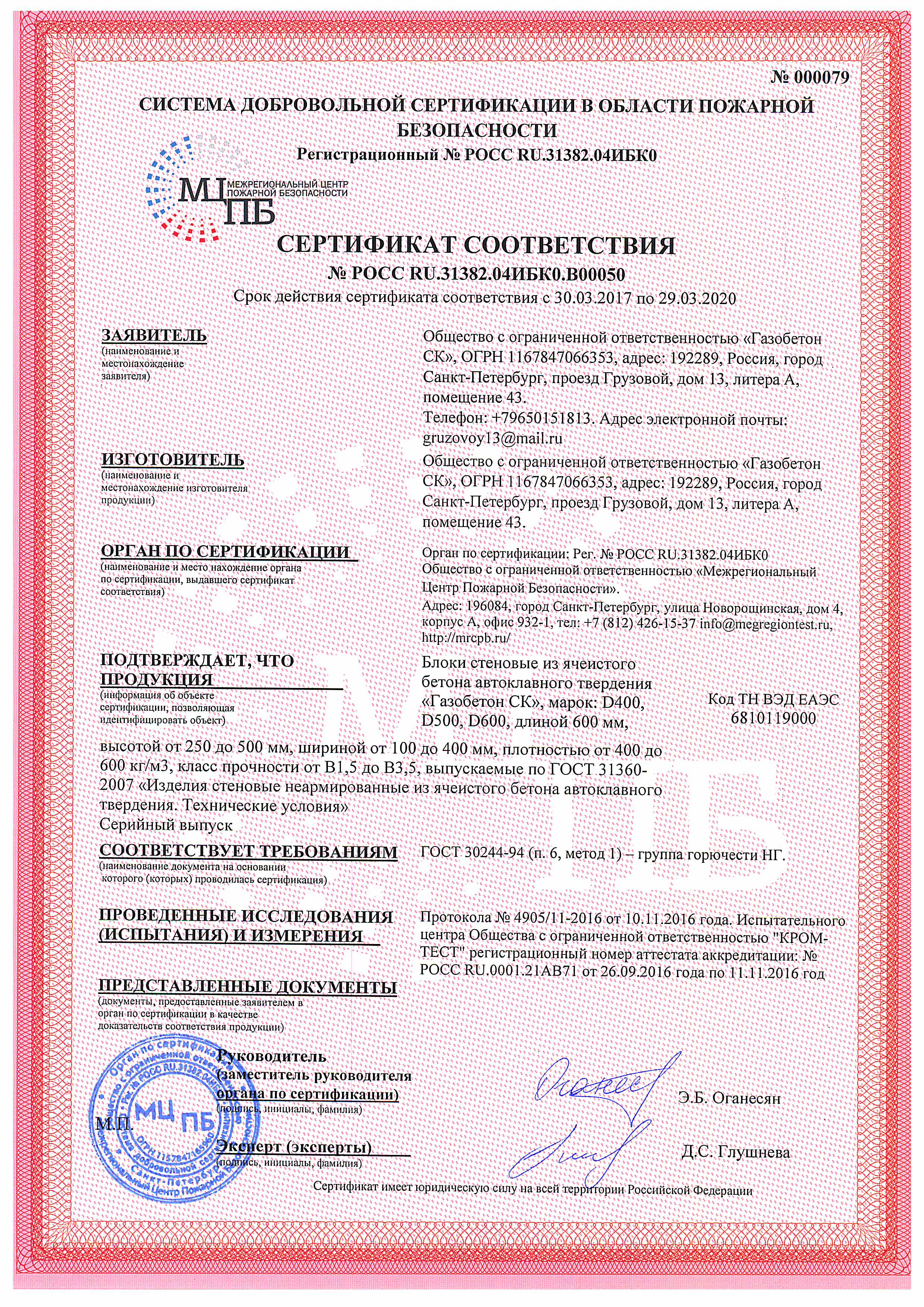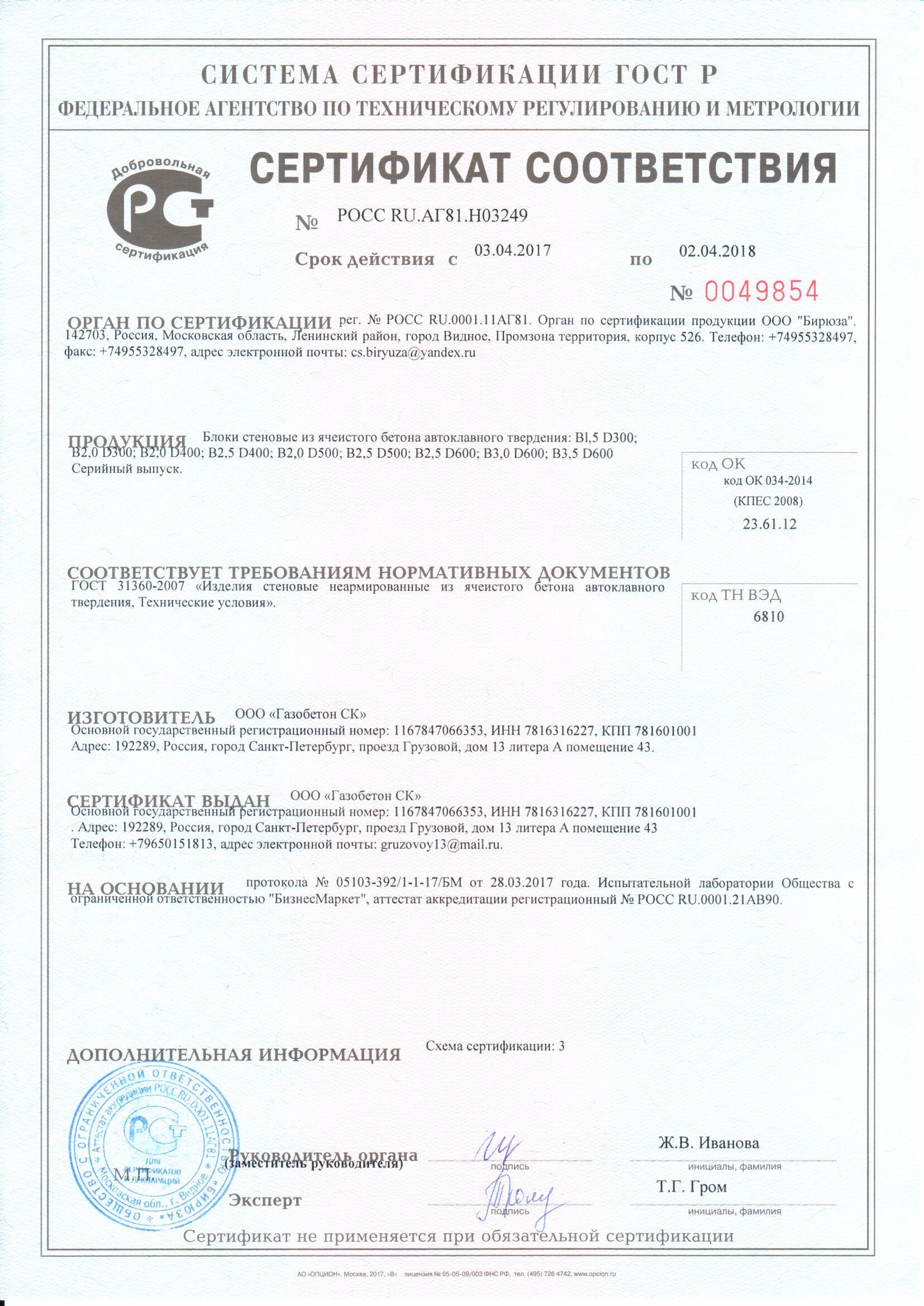 Подтвержденное сертификатами и действующими ГОСТ